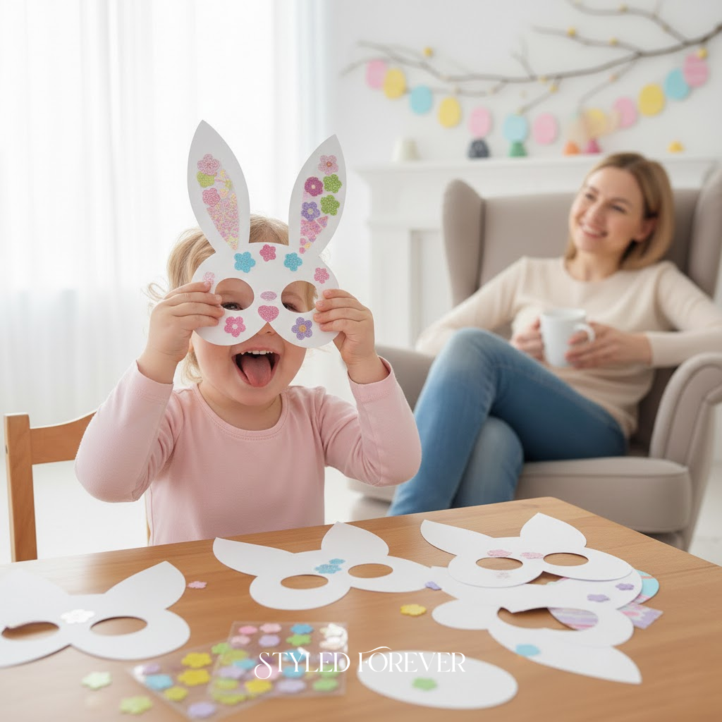 Paper masks, foam stickers, done. Toddlers decorate bunny faces, then instantly turn into little characters. No paint, no glue, no clean-up sprint. It feels imaginative and sweet, like playing dress-up before a wedding. You’ll love watching their personalities come out—and the masks double as pretend-play props later!