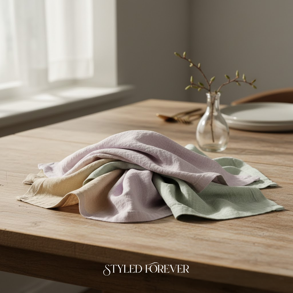 Cloth napkins bring warmth to any table. Choose ones dyed in gentle shades—warm beige, pale lavender, muted green. Fold them loosely. Let creases show. This detail feels caring without effort. It suggests time taken, but not rushed. It is a quiet way to mark the season.