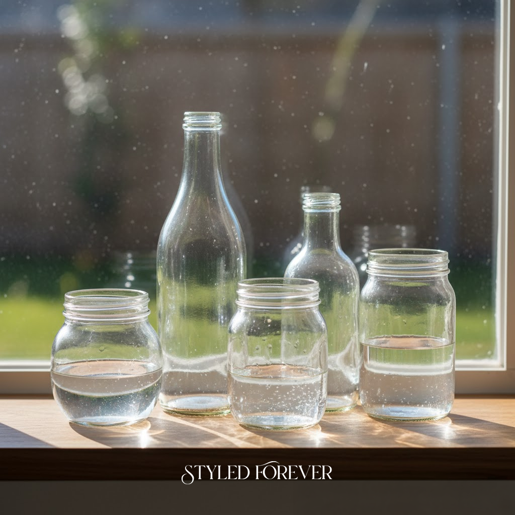 Clear jars filled with nothing but light can still feel seasonal. Place them near windows where sunlight can pass through. Add water if you like, or leave them empty. Sometimes reflection is enough. This idea is about space and air, about letting the room breathe.