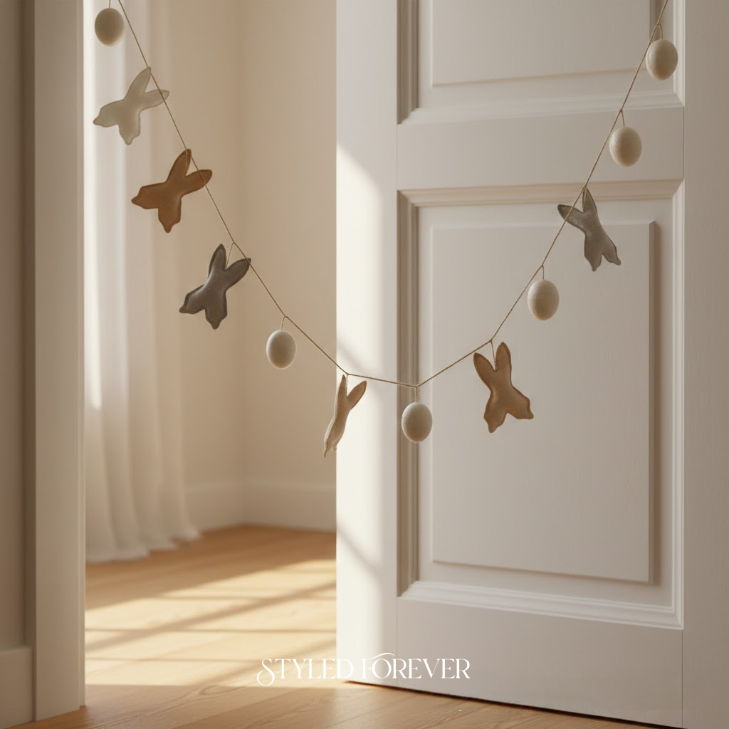 A fabric or paper garland draped lightly over a doorway marks transition. Choose materials that fall naturally and colors that stay close to neutral. As you walk beneath it, the shift feels gentle. It is a quiet way to move from one space to another during the season.