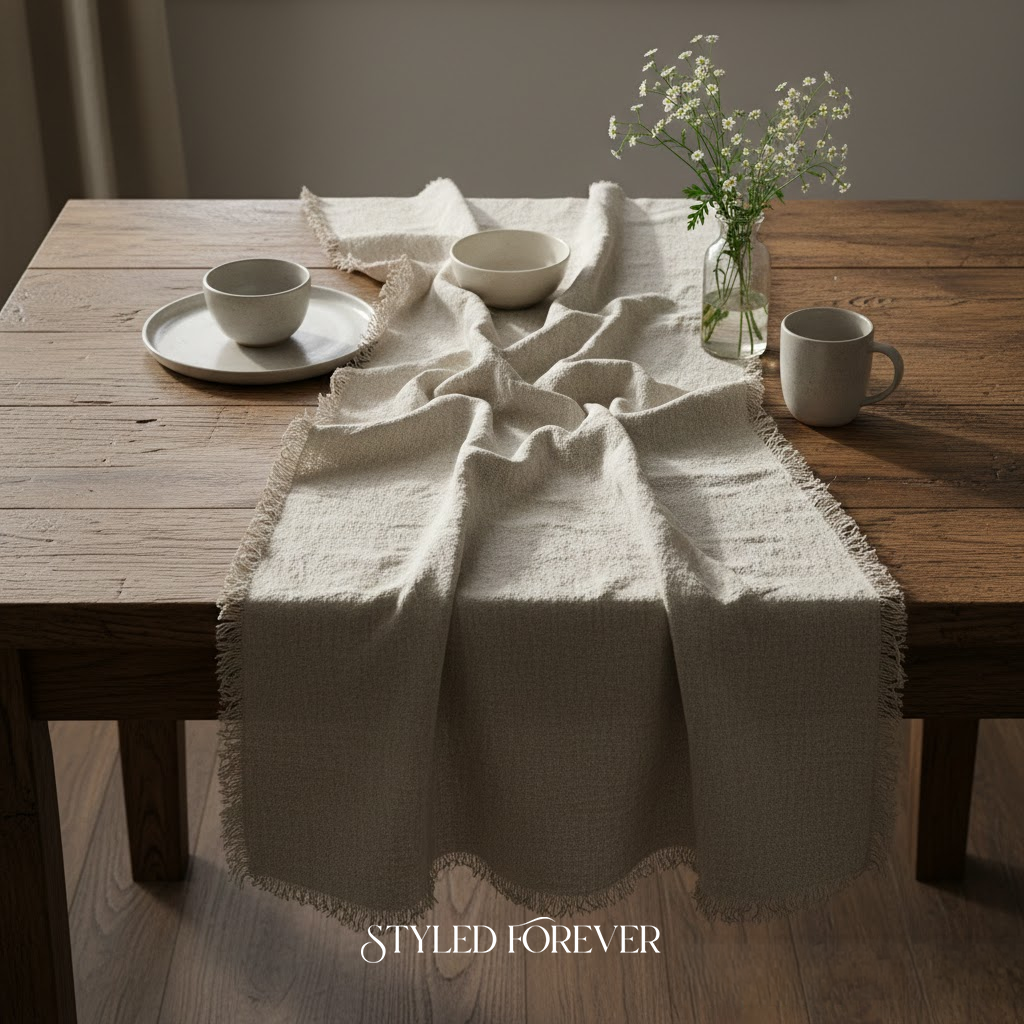 A linen runner draped loosely across the table changes the room without effort. Choose fabric with a soft weave and unfinished edges. Let it fall naturally, not centered, not measured. Pair it with simple tableware and allow the fabric to do the quiet work. The texture matters more than color—oat, stone, faded white. It feels lived-in and peaceful, like something you would keep out long after Easter passes.