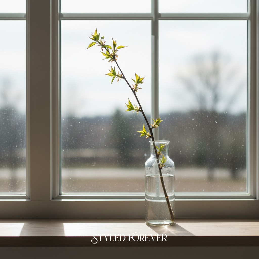 One branch is enough. Choose something with soft buds or tiny leaves just beginning to open. Place it in a clear glass vase and set it near a window. Watch how the light passes through water and stem. This decoration changes daily. It asks you to notice growth in real time. There is something grounding in that simplicity.