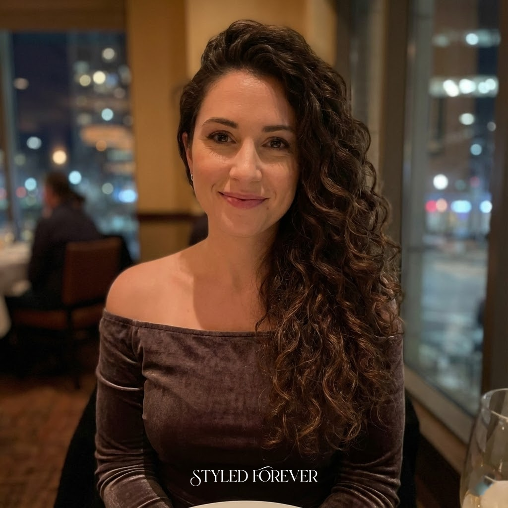 Sweep your curls to one side for a soft, dramatic silhouette. It’s glamorous without heaviness and brings the perfect mix of romance and confidence. A go-to for evenings when you want your hair to say everything.