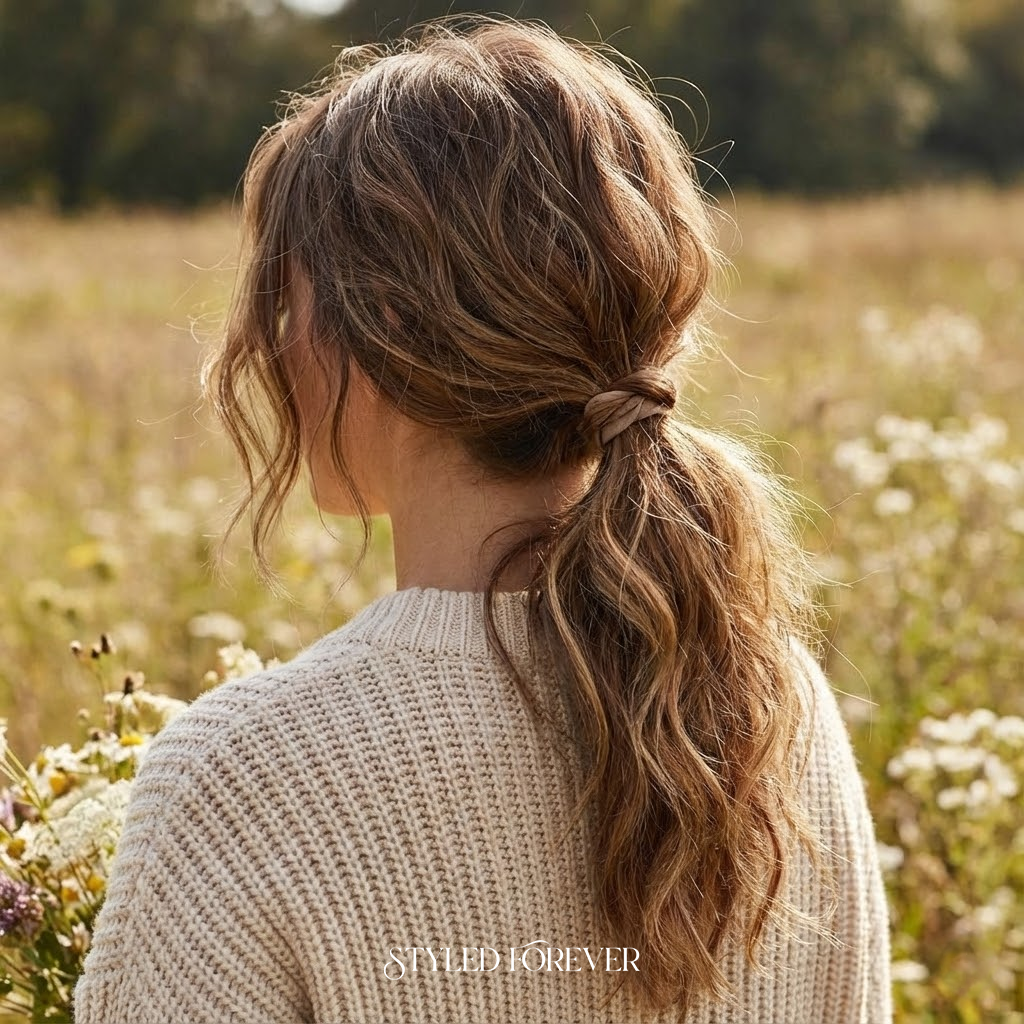 1. Soft Ribbon-Tied Ponytail