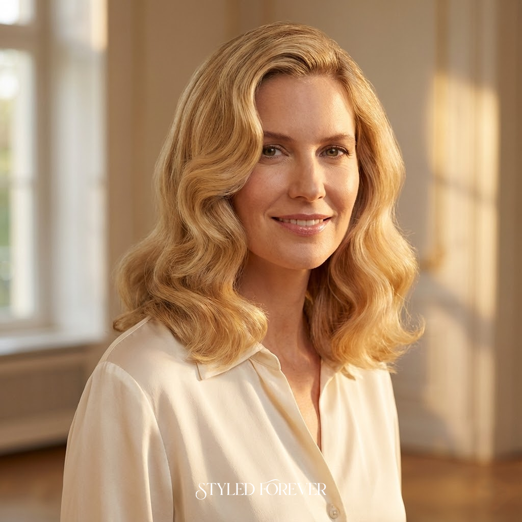 Classic waves with airy movement always hit the mark. They frame your face with soft glamour and bring that effortless glow. This style feels confident and romantic at the same time—perfect for anyone who loves a little movie-star magic without the heavy drama.
