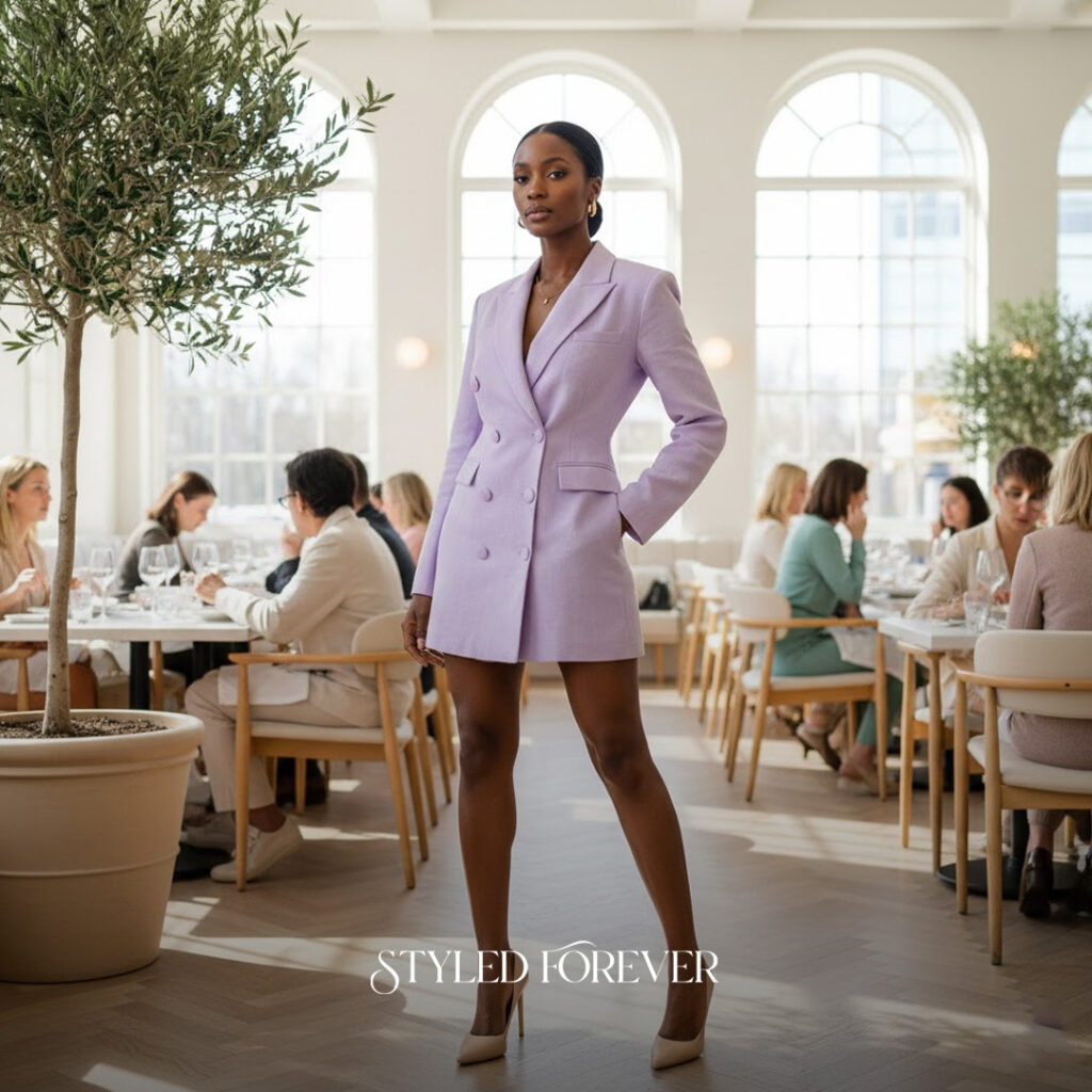 A blazer dress in a spring color is such a vibe. It’s structured, flattering, and fashion-forward. Pair with heels and minimal jewelry. This look feels confident and stylish—perfect if you want something a little different.