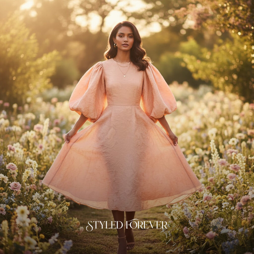 Puff sleeves, bell sleeves—yes please. A statement sleeve adds drama in the best way. Keep everything else simple and let the dress shine. This outfit feels fun and fashionable without being loud.