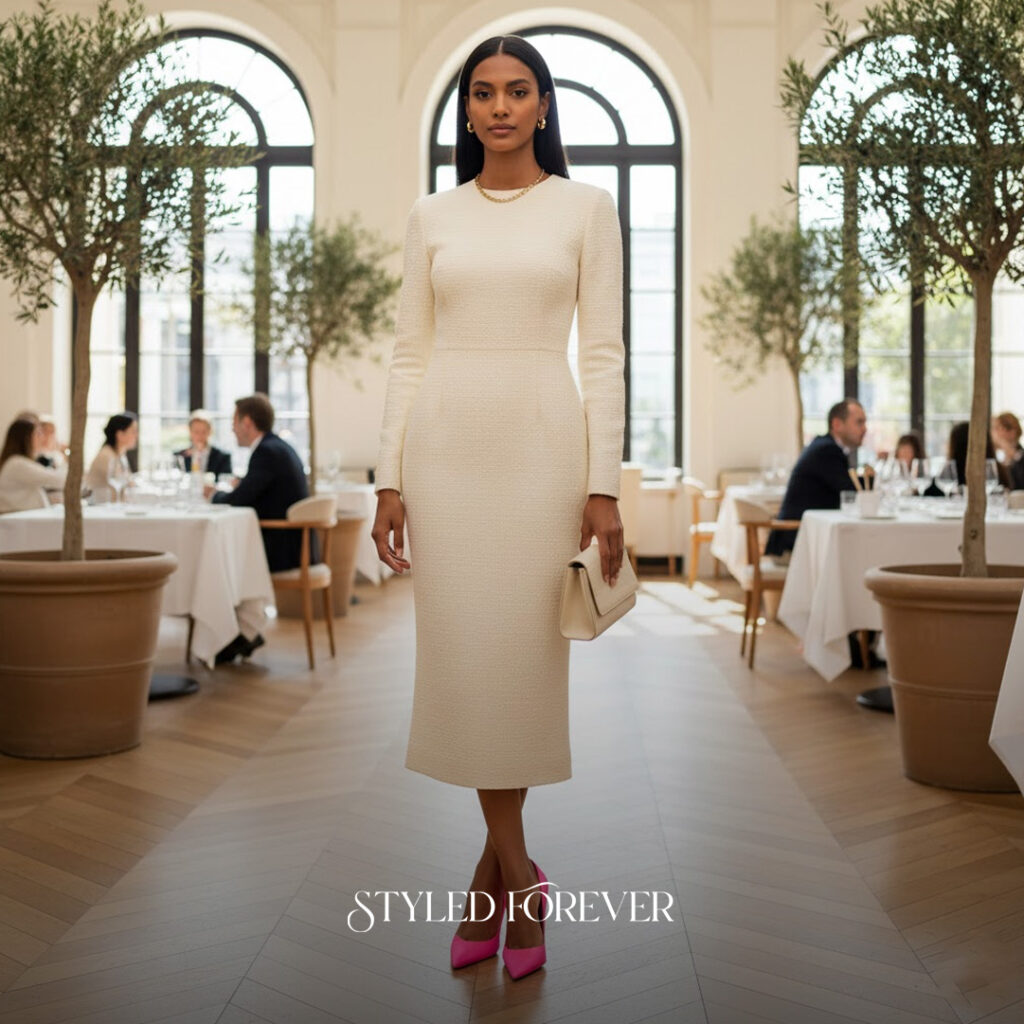 If you love neutrals, add color through your shoes. A beige or cream dress with pink, yellow, or green heels feels intentional and stylish. You’ll love how balanced this look feels.