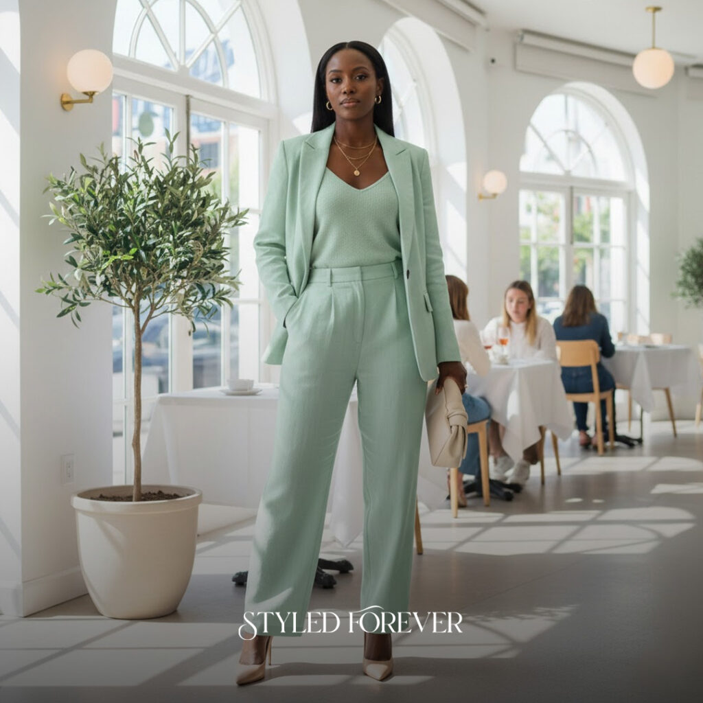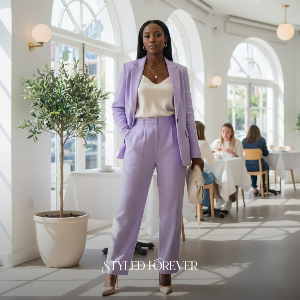 Who said Easter outfits have to be dresses? A pastel pantsuit is chic and modern. Pair it with a simple top and sleek heels. This look says confident, stylish, and totally in control. You’ll love how powerful this feels while still keeping that spring softness.
