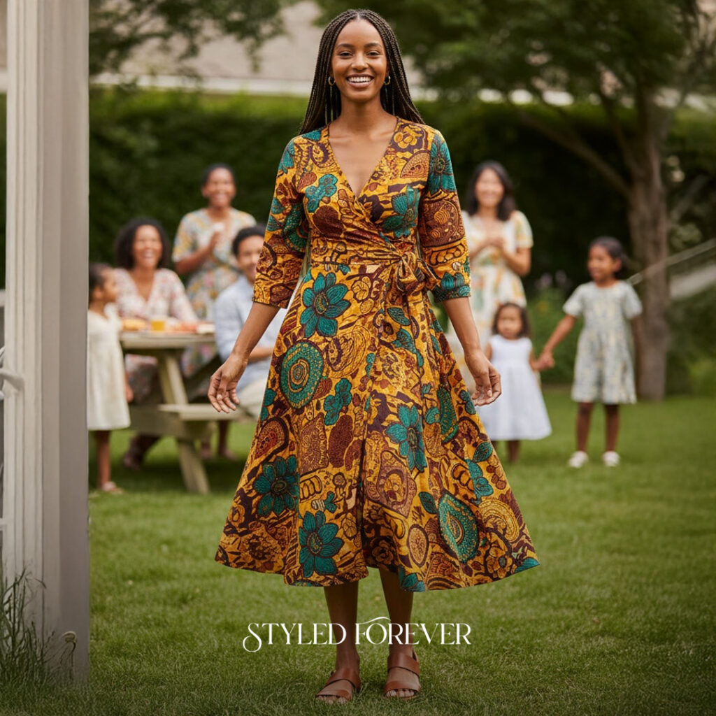 A wrap dress is flattering on everyone—and a bold print makes it Easter-ready. Think florals, abstract designs, or African-inspired prints. The shape hugs just right, and the print does all the talking. Add simple sandals and let the dress shine. This look feels joyful and fun—perfect for family gatherings.