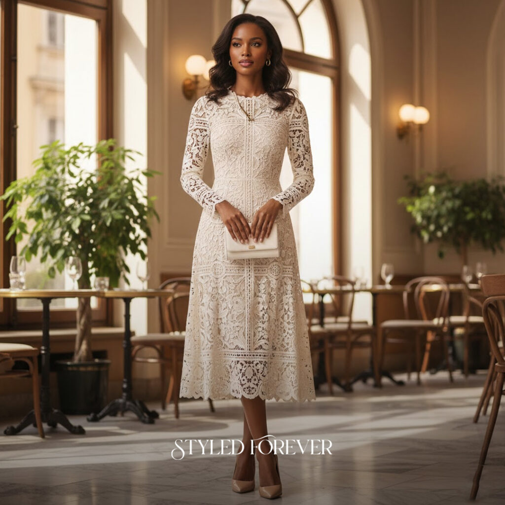 A lace dress feels romantic and polished without much effort. Let the texture speak for itself—keep makeup soft and accessories simple. This look is perfect if you want something refined but not boring. It’s very “effortless elegance” energy.