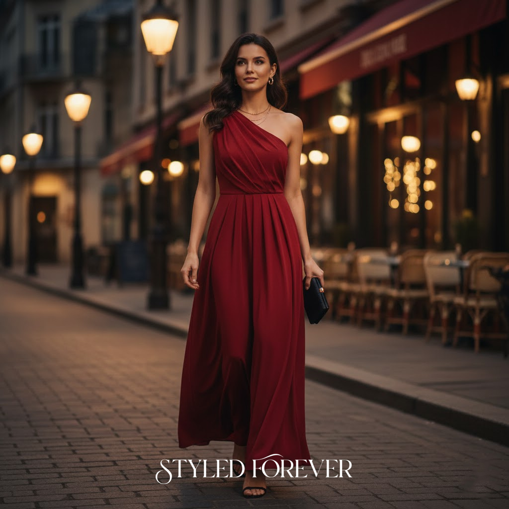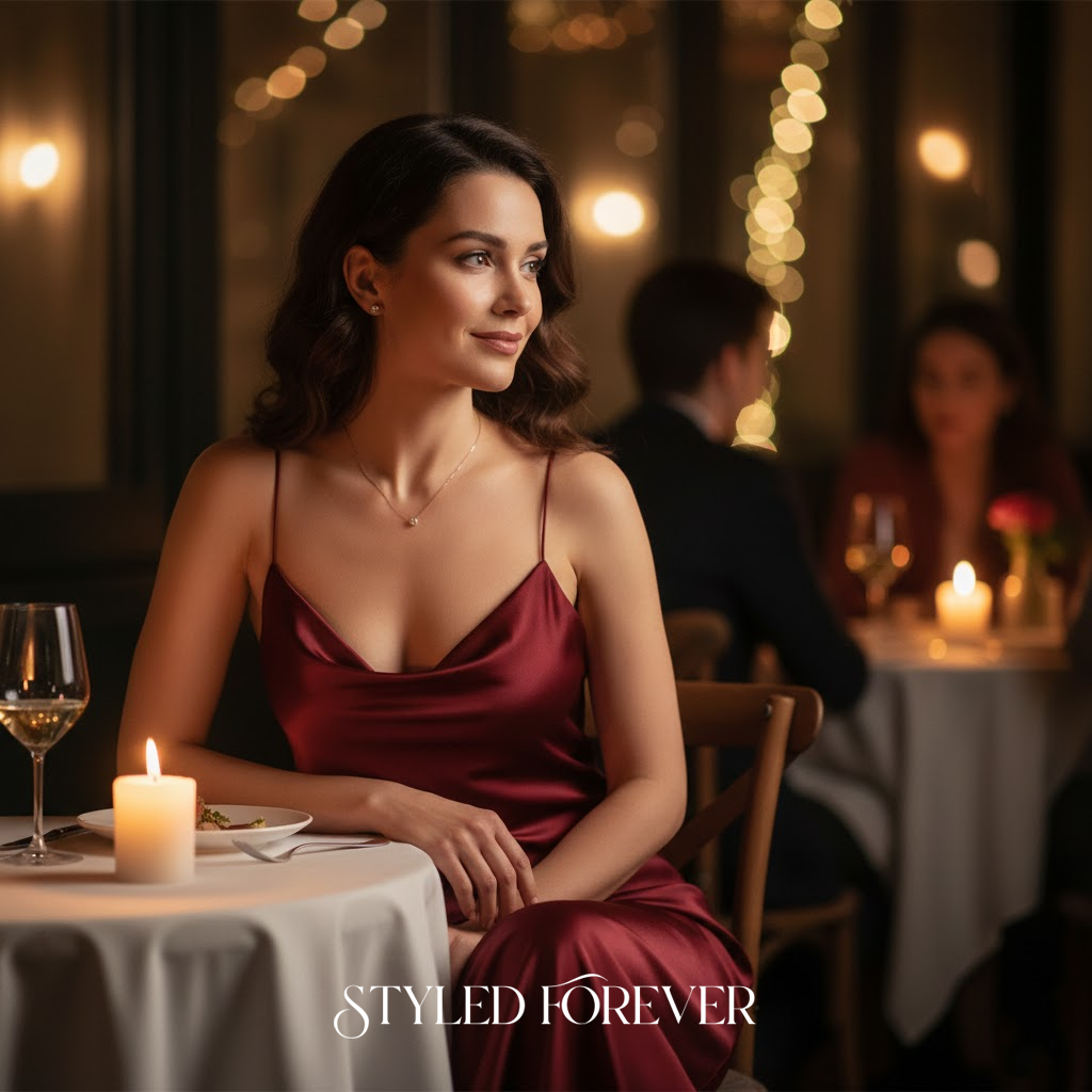 A slip dress in a deep shade feels dreamy without being loud. It drapes beautifully and pairs well with minimal jewelry. Ideal for intimate dinners.
