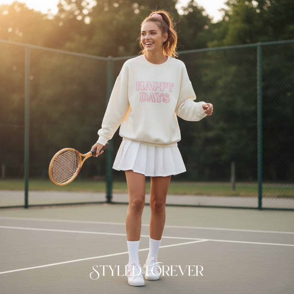 6. Oversized Sweatshirt and Tennis Skirt